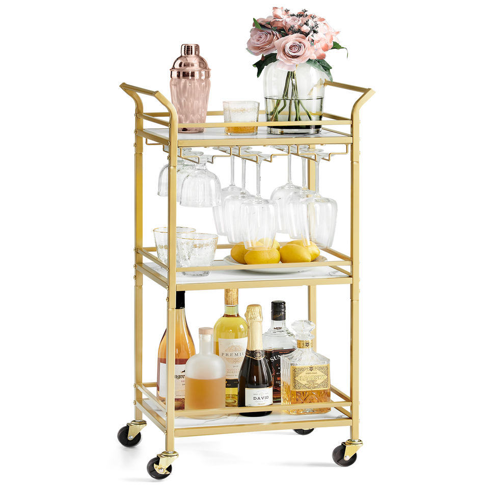 VASAGLE Desserte de Cuisine 3 Niveaux avec Porte-Bouteilles et Porte-Verres, Chariot de Rangement pour la Maison