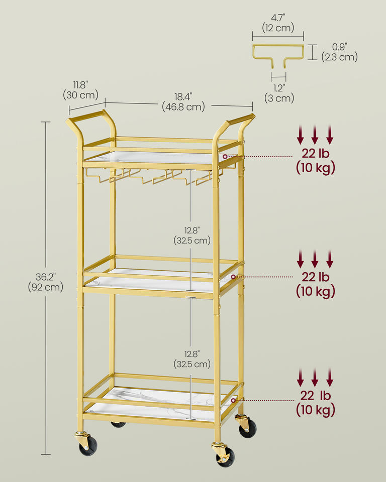 Nom du produit:Chariot de cuisine à 3 niveaux VASAGLE avec casier à vin