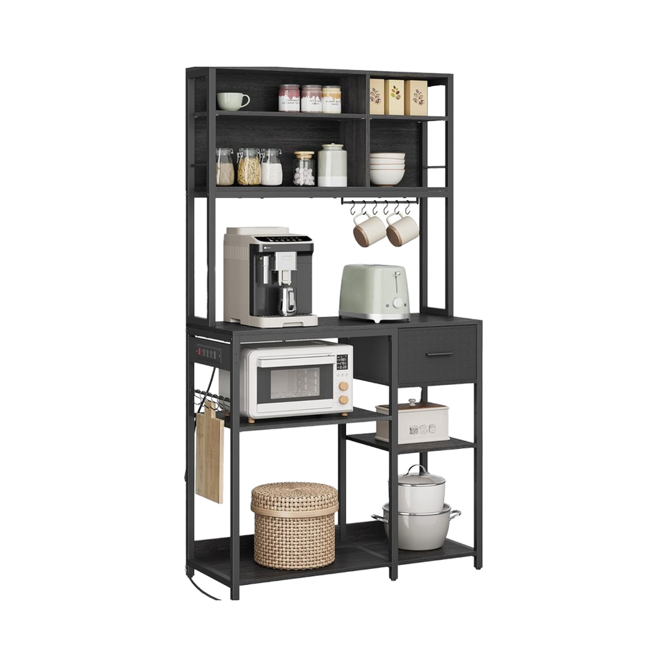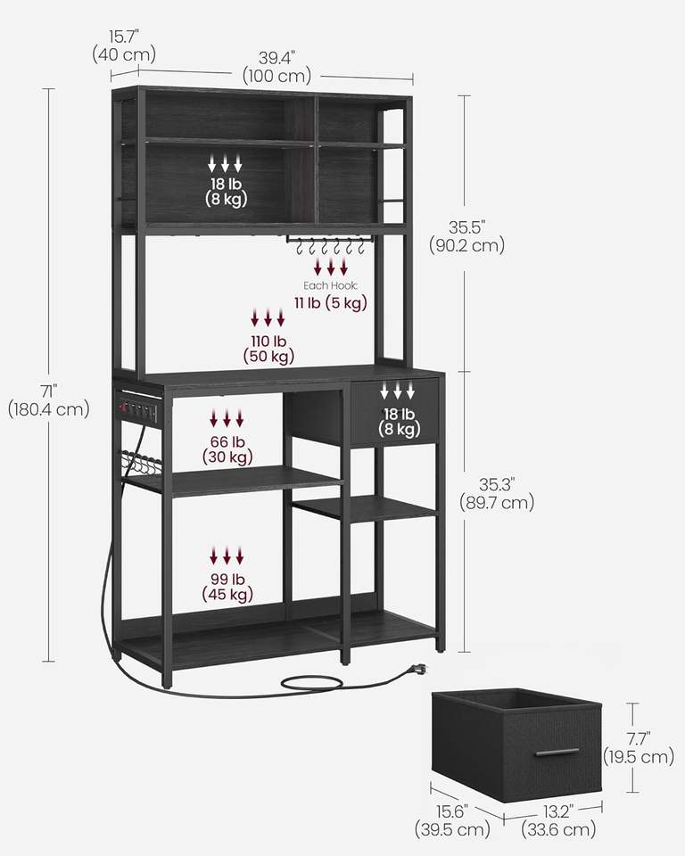 Étagères de rangement réglables VASAGLE, 12 crochets, tiroir en tissu, 15,7 x 39,4 x 71 pouces, support pour micro-ondes en métal pour la cuisine à domicile