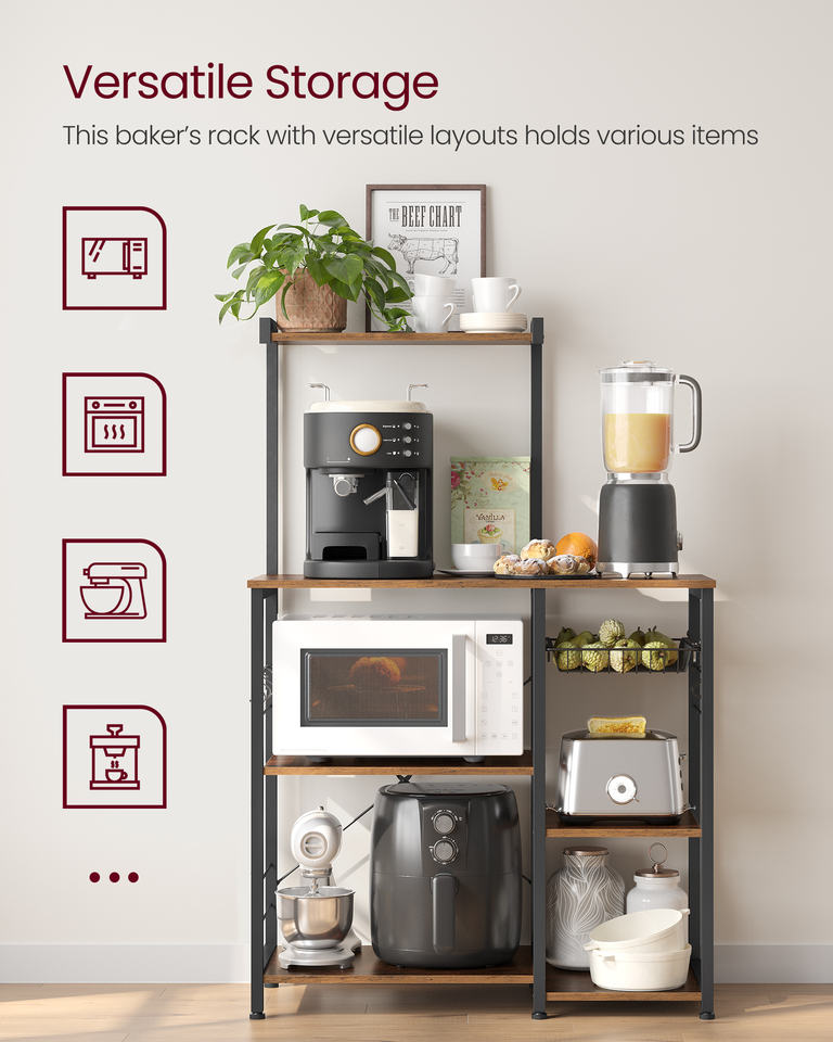 Support de boulanger VASAGLE avec étagères, support pour micro-ondes avec panier en fil métallique