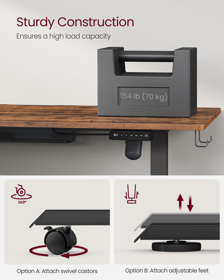 Bureau électrique réglable en hauteur, 160 cm, avec un seul moteur.