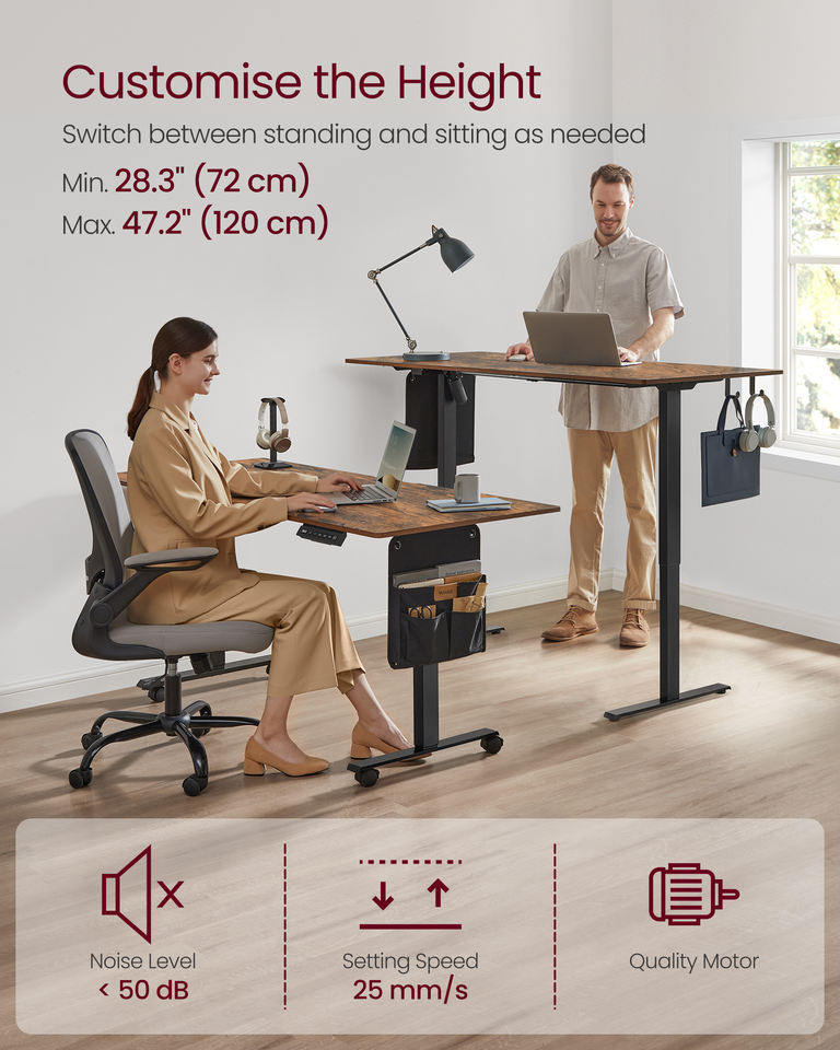 VASAGLE Bureau Debout Électrique Réglable en Hauteur, Moteur Unique, Design Moderne, 160 cm, Blanc