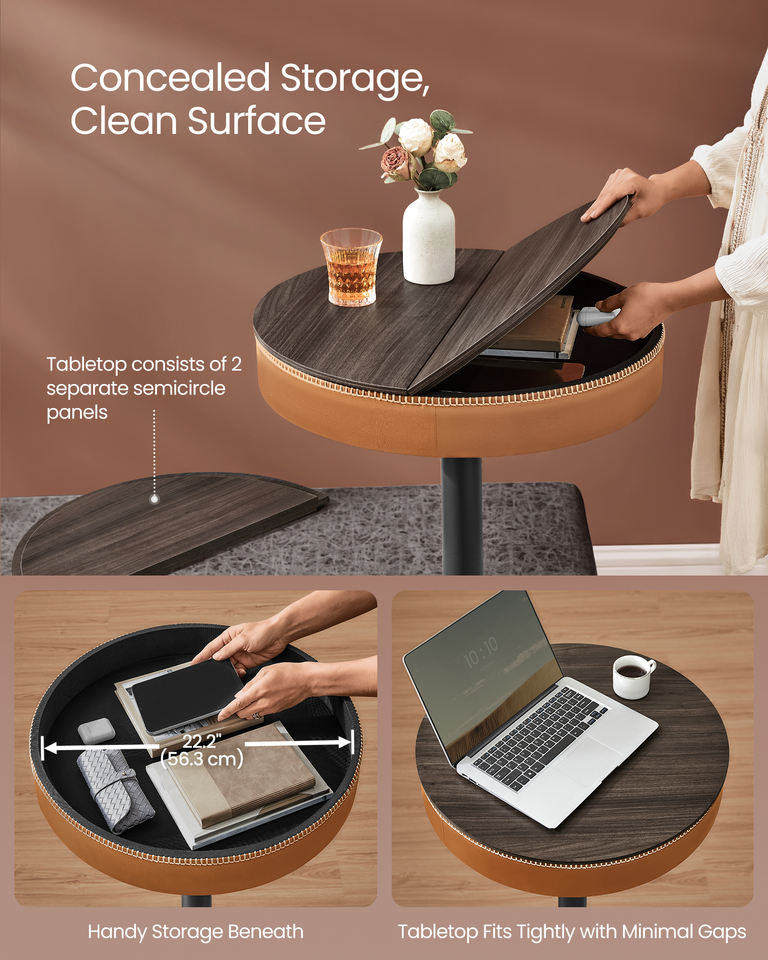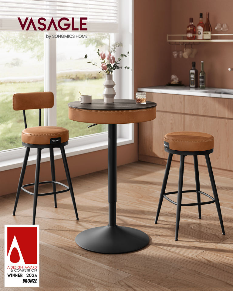 VASAGLE EKHO Collection Table de bar de cuisine en cuir synthétique Table de bar ronde haute réglable en hauteur