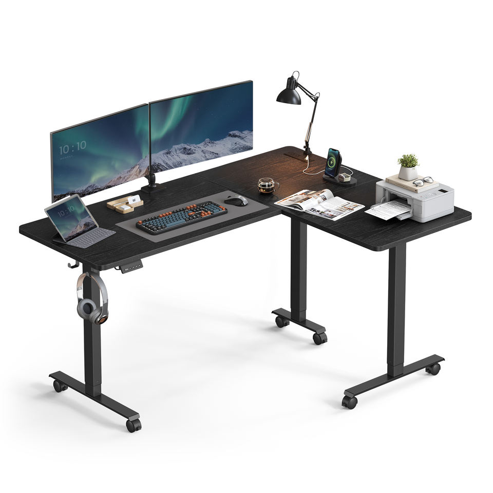 Nom du produit:VASAGLE Bureau debout électrique en forme de L avec prises de courant