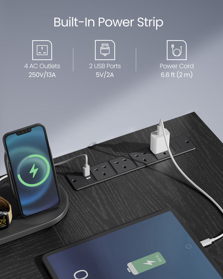 Nom du produit:VASAGLE Grande table de bureau pour PC avec tiroir de classement et prise de courant
