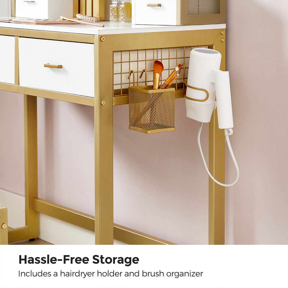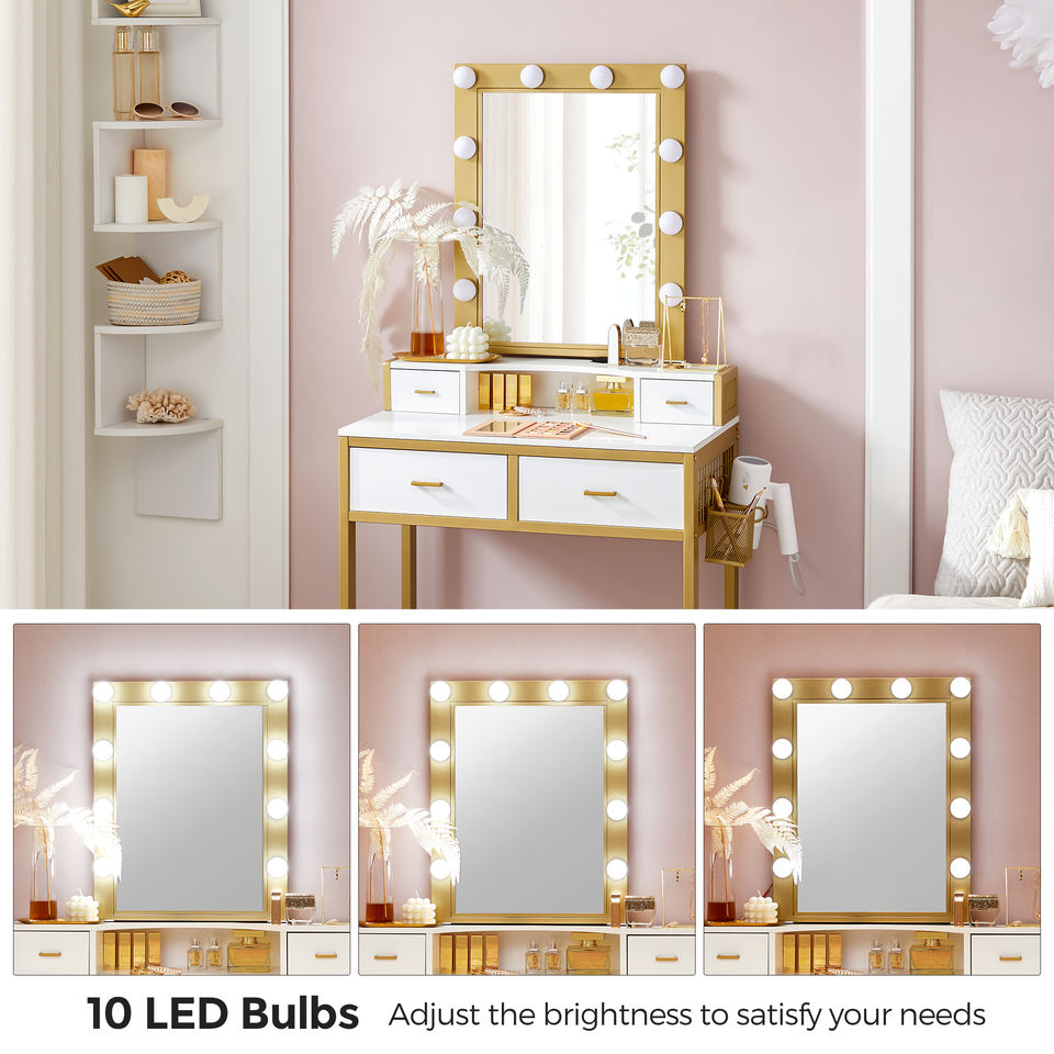 VASAGLE Table de toilette de luxe en gros avec miroir de maquillage à 10 lumières LED et tiroirs