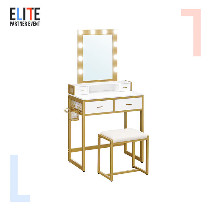 Nom du produit:La table de vanité avec 10 a mené le miroir et les tiroirs légers de maquillage
