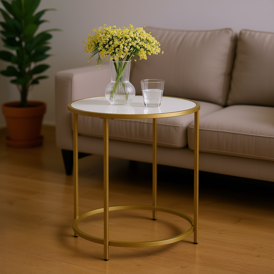 Table d'appoint VASAGLE avec plateau en verre trempé, cadre doré pâle, table basse moderne, meubles de salon
