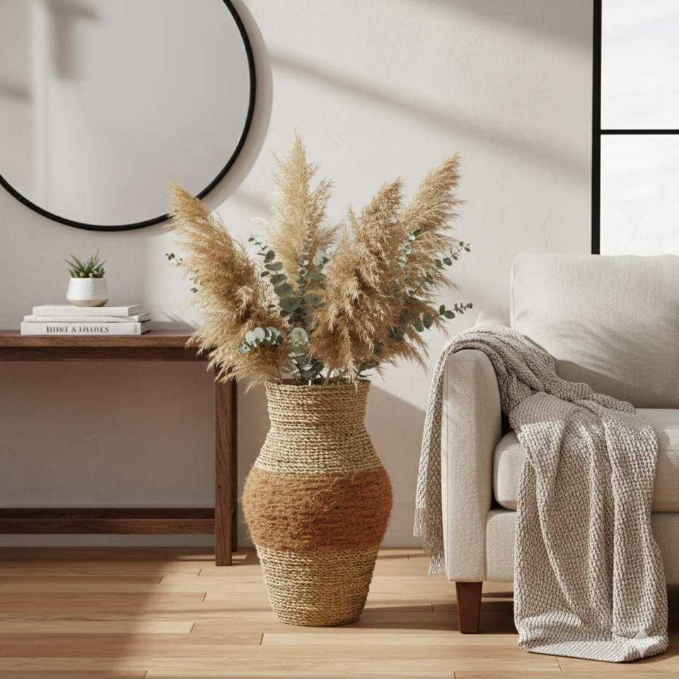 Vase artisanal en fibre de coco et en herbe de mer