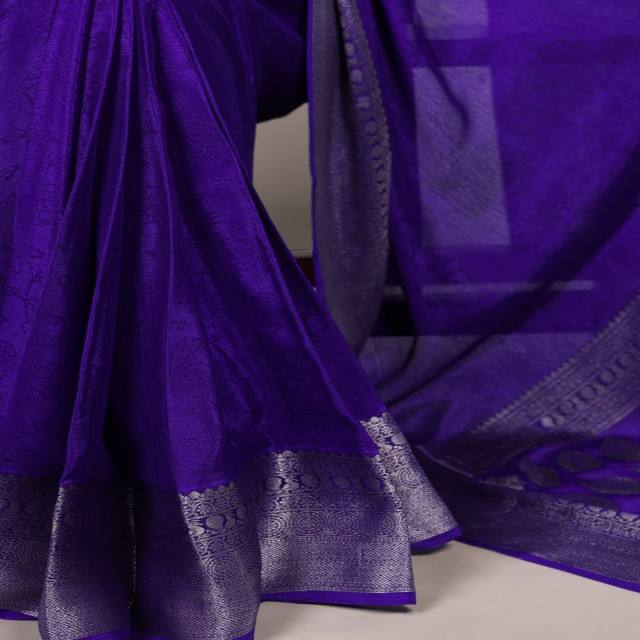 Sari Chinon de créateur VASTRA COTTAGE avec travail de tissage Zari imprimé sur soi-même et chemisier non cousu en Chinon Zari assorti