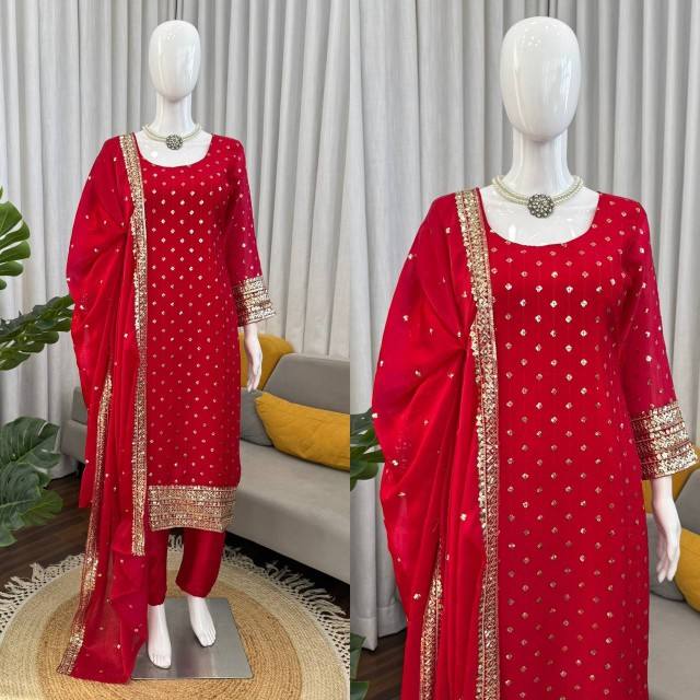 Ensemble Kurta et pantalon en soie de créateur VASTRA COTTAGE avec broderie complexe en fils et sequins et dupatta assorti pour fêtes et mariages