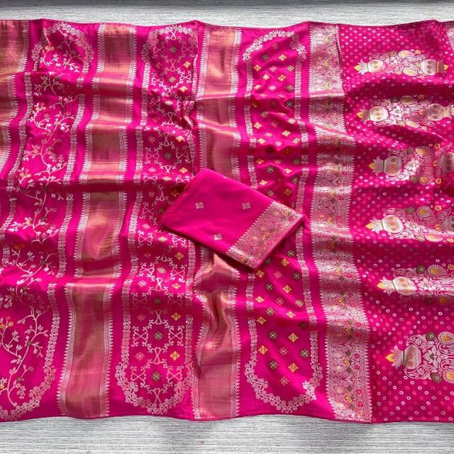 Sari VASTRA COTTAGE en viscose Georgette Pure Chinya avec tissage Jari doré, pallu floral riche et blouse contrastante teinte à la main