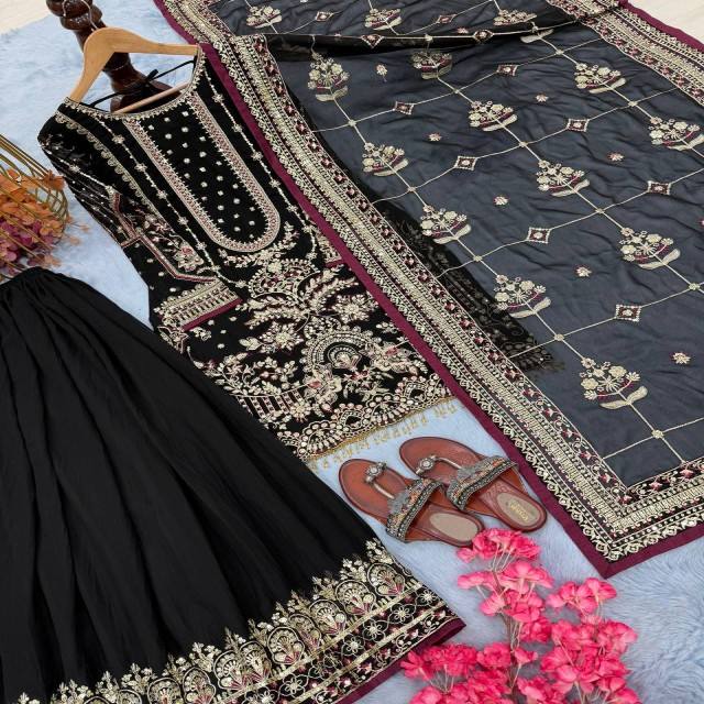 Ensemble ethnique pour femme VASTRA COTTAGE, haut entièrement cousu, pantalon palazzo avec dupatta en faux georgette épais, broderie et travail de sequins