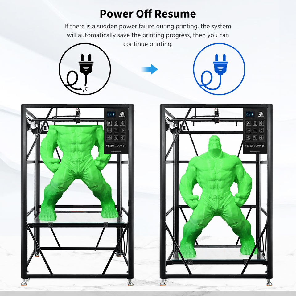 VEHO 800 Imprimante 3D FDM grand format à succès, structure stable Marlin, couleur unique, impression 3D rapide