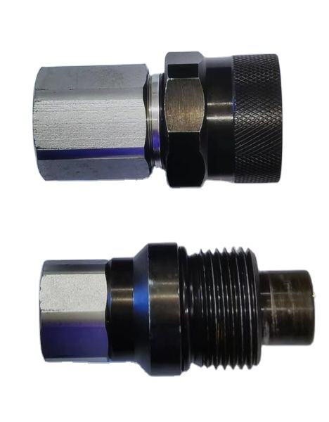 Raccords rapides hydrauliques à verrouillage fileté à face plate.