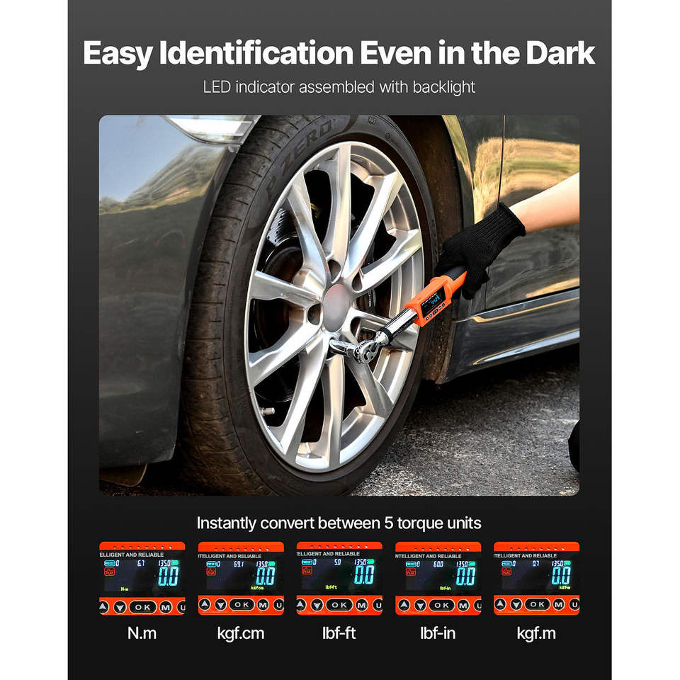 Clé dynamométrique numérique VEVOR 72 dents, haute précision 2%, clé à chocs électronique, alimentation manuelle, alliage de qualité professionnelle