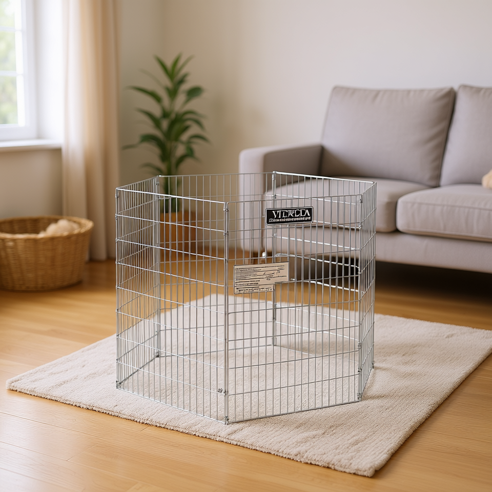 VEXCEA Cage modulaire pour animaux de compagnie à 6 panneaux, hexagonale, en fer galvanisé, taille moyenne, enclos intérieur pour animaux