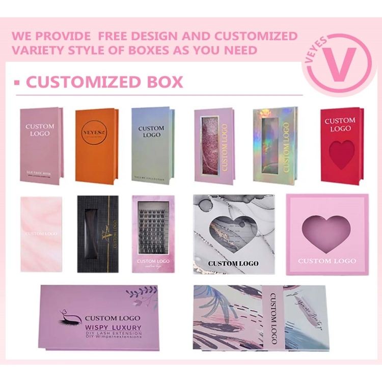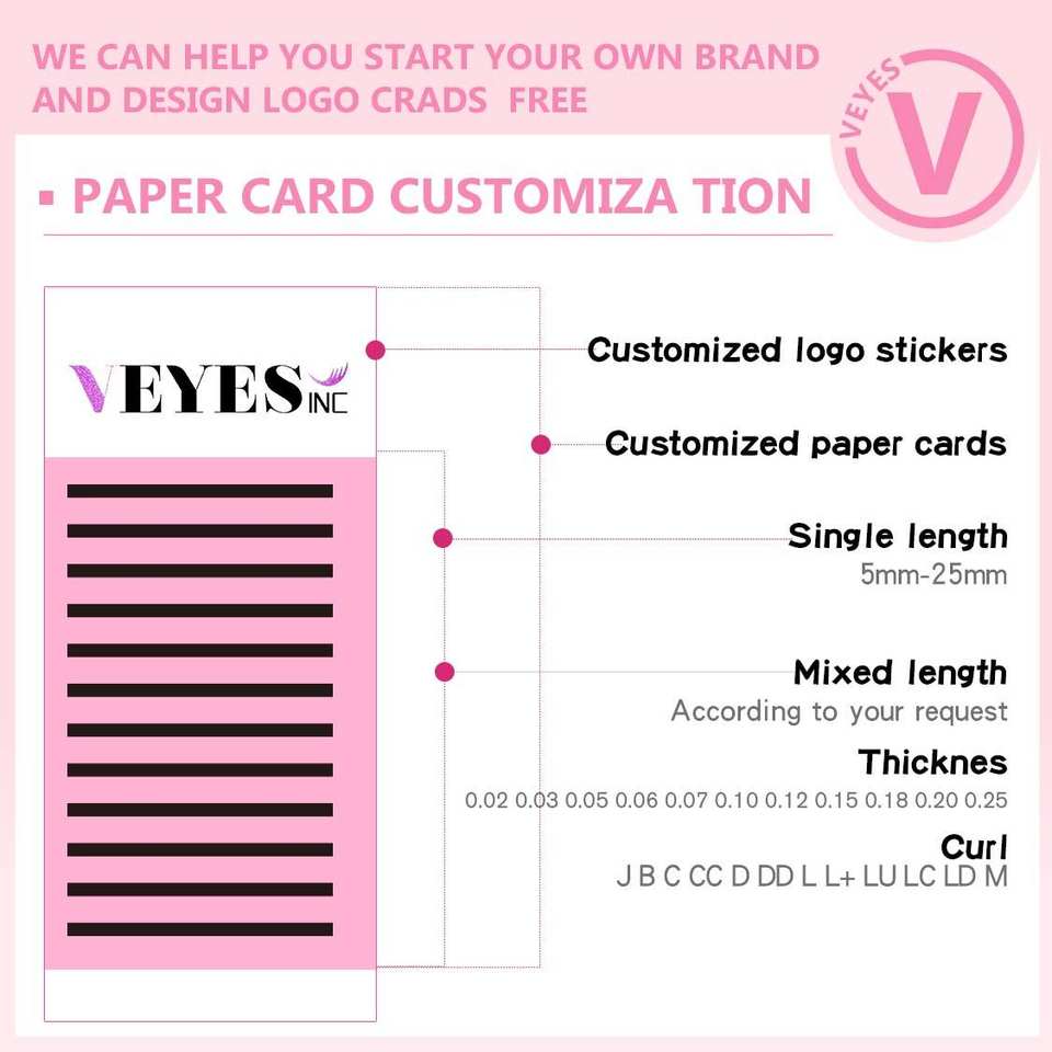 Extensions de cils VEYES personnalisées, 8-16 mm, 25 mm, 0,03 volume, PBT, faites à la main, fourrure naturelle, bande complète, avec étiquette privée