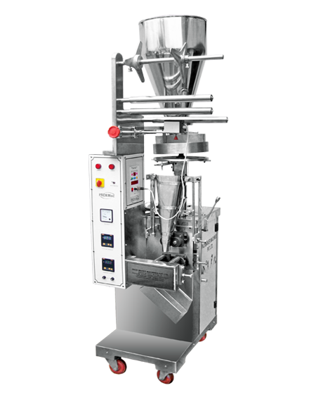 Machine d'emballage VFFS pour sachets, système de remplissage de gobelets, moteur électrique automatique, scellage haute précision pour produits alimentaires et chimiques, fabriqué en Inde