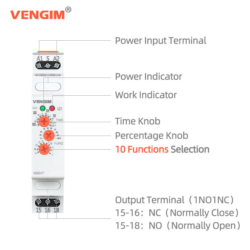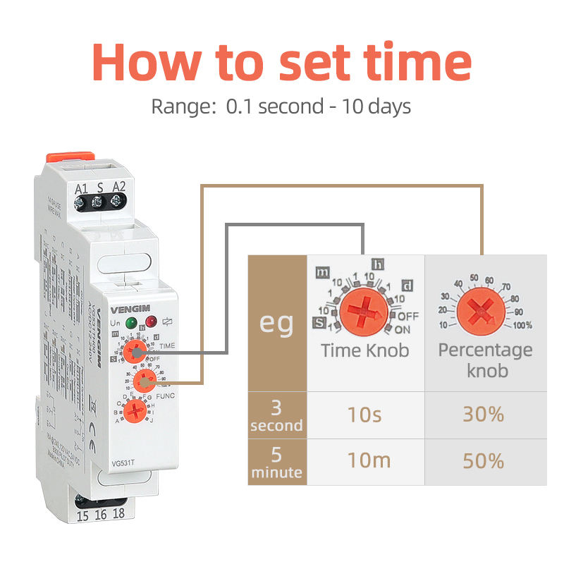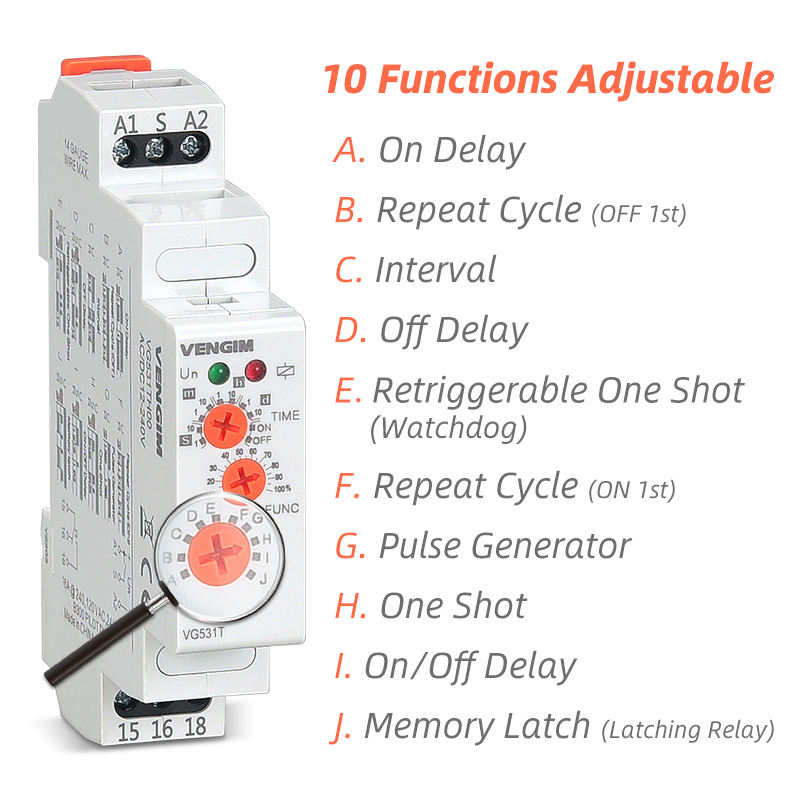 Relais temporisé multifonction VG531T 16A 12V 24V 220V 230V AC DC avec 10 fonctions, relais temporisé à temporisation de coupure sur rail DIN L33