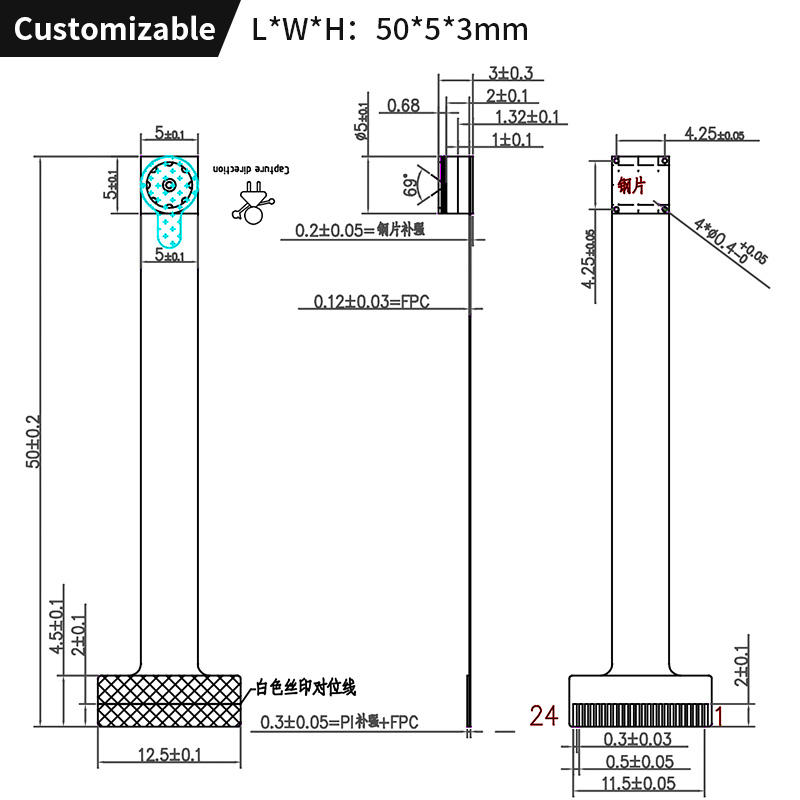 Sortie:YCbCr4:2:2/RGB565/Raw Bayer