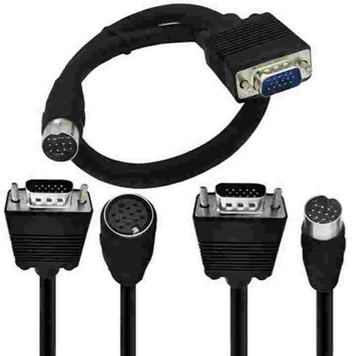 Câble de Transmission de Signal Audio/Vidéo VGA vers DIN 13 broches femelle vers femelle et DB15P mâle vers Mini DIN 13 broches mâle