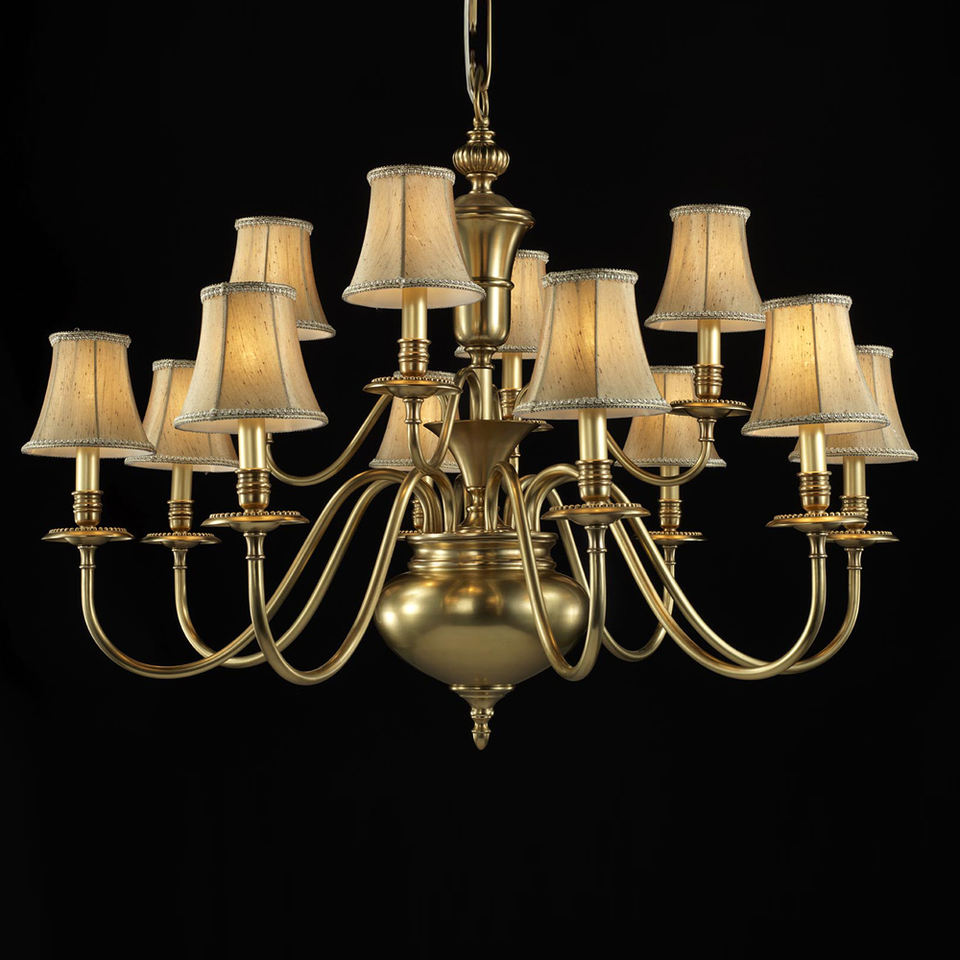 VH American Country Lustre en tissu de laiton simple avec abat-jour en tissu Nordic Vintage Large LED Suspension pour Villa Hauteur réglable