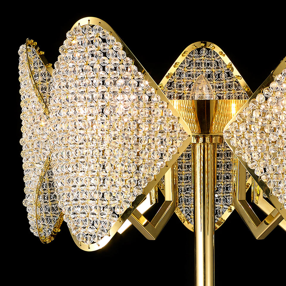 VH Lampadaire moderne à LED en cristal doré avec hauteur réglable Design d'intérieur de luxe pour coin salon/chambre à coucher