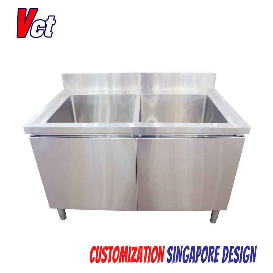 VICTORY Évier double en acier inoxydable argenté, équipement de boulangerie, modèle VCT-04 pour hôtels et restaurants, fabriqué en Chine