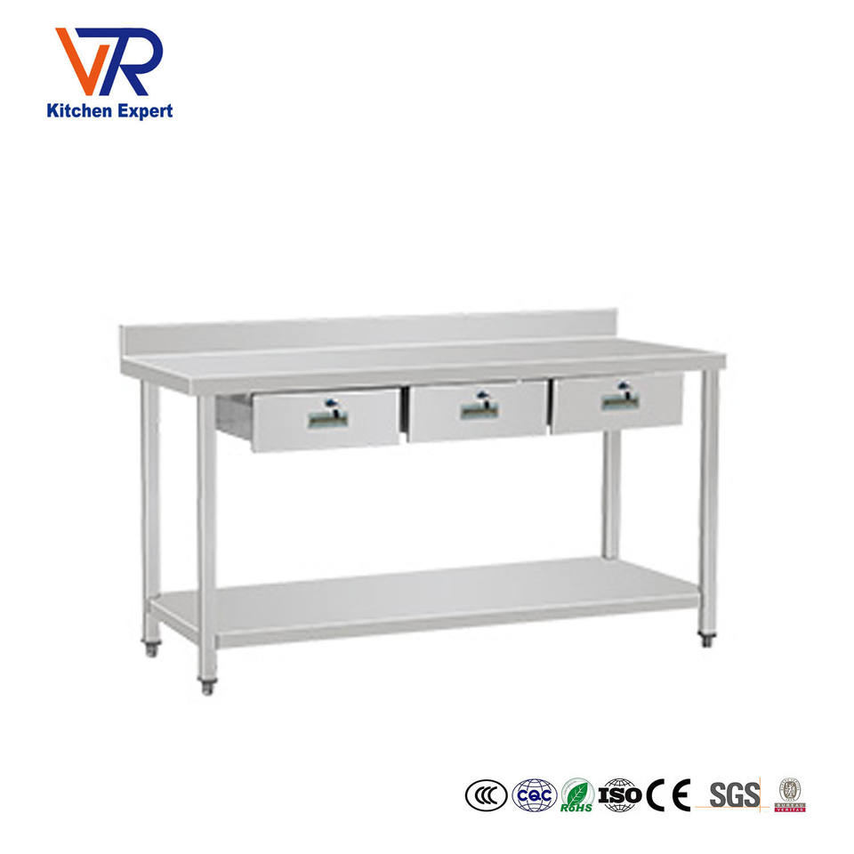 VICTORY Offre Spéciale table à tiroirs en acier inoxydable avec dosseret équipement de cuisine banc en inox pour autres fournitures d'hôtel et de restaurant