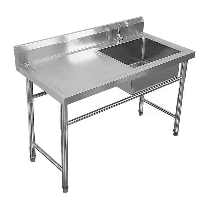 VICTORY KITCHEN Hotel or Restaurant Supplies Working Table with Sink Stainless Steel Kitchen Sink with Drainboard for Restaurant