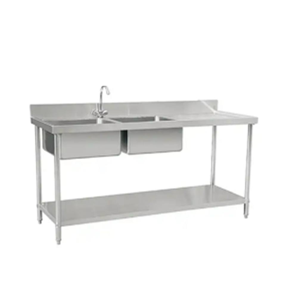 VICTORY KITCHEN Éviers de cuisine Évier double avec égouttoir éviers commerciaux en inox avec 2 bassins équipement de restaurant pour cantine