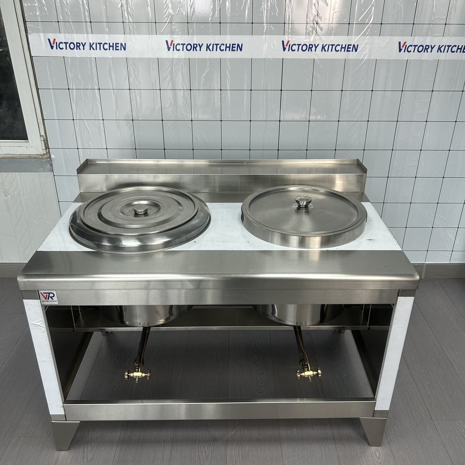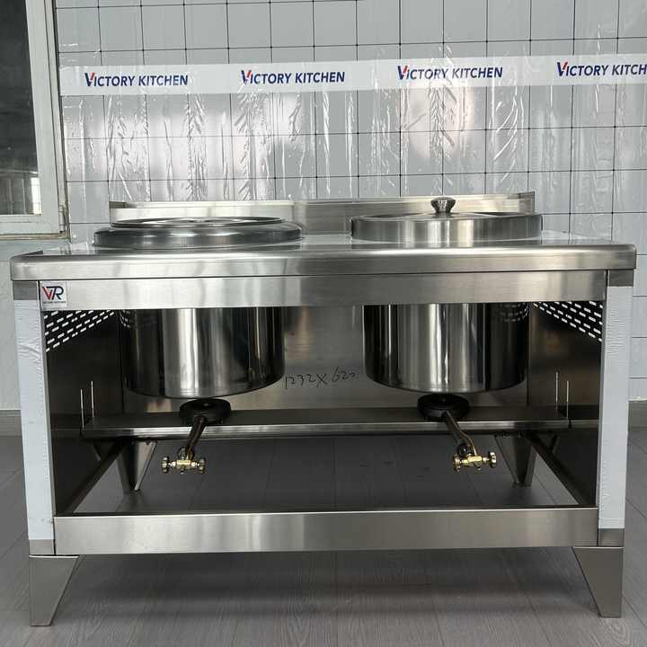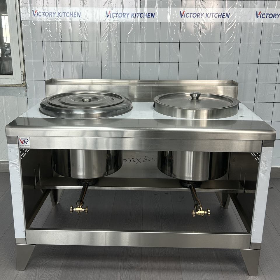 VICTORY Personnalisé en Acier Inoxydable Gamme Kwali Deux Brûleurs à Gaz Snack Cart Ensemble de Cuiseur à Thé et Nouilles pour Hôtels et Restaurants