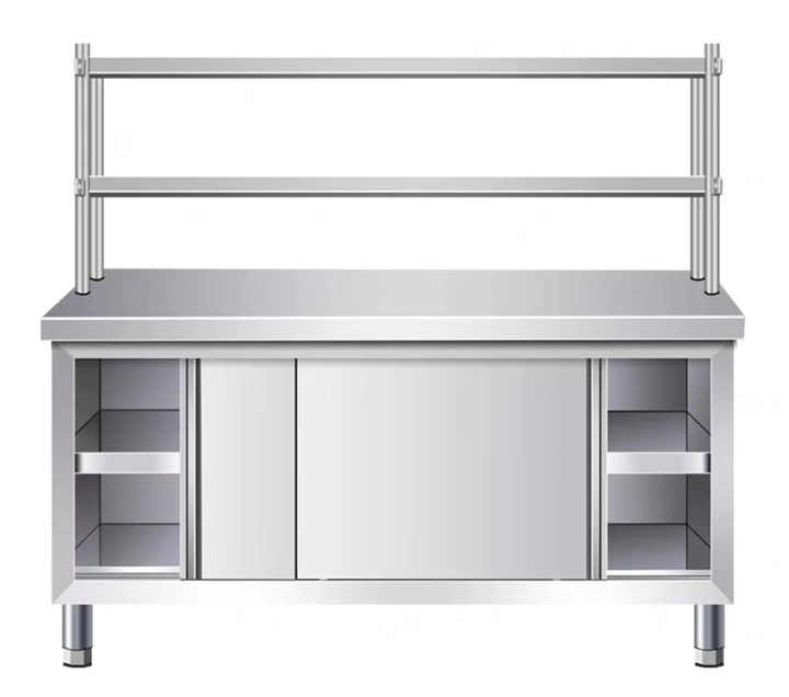 Victory 2-Tier Stainless Steel Sliding Door Table with Bench Factory Price Hotel & Restaurant Supplies