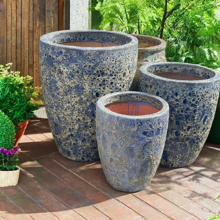 Pot de jardin géant en argile noire d'Atlantide, fait à la main au Vietnam, antique, cuite à haute température
