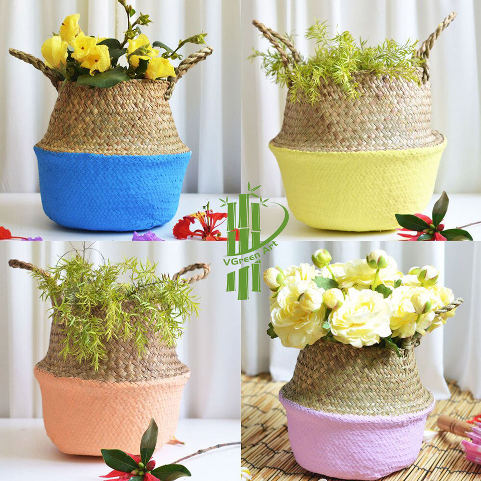 Paniers de rangement colorés du fournisseur du Vietnam Pot de fleurs Panier en jonc de mer tissé en bleu rouge jaune marron rose vert