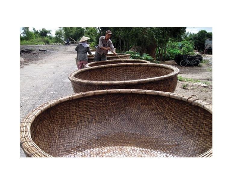 Bateau de pêche traditionnel vietnamien en bambou, bateau rond en bambou naturel du Vietnam