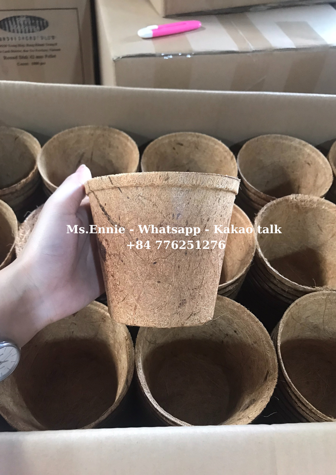Fournisseur vietnamien de pots à plantes classiques en fibre de coco 100% naturelle, biodégradables, sculptés à la main, prix le plus bas, ECO2GO