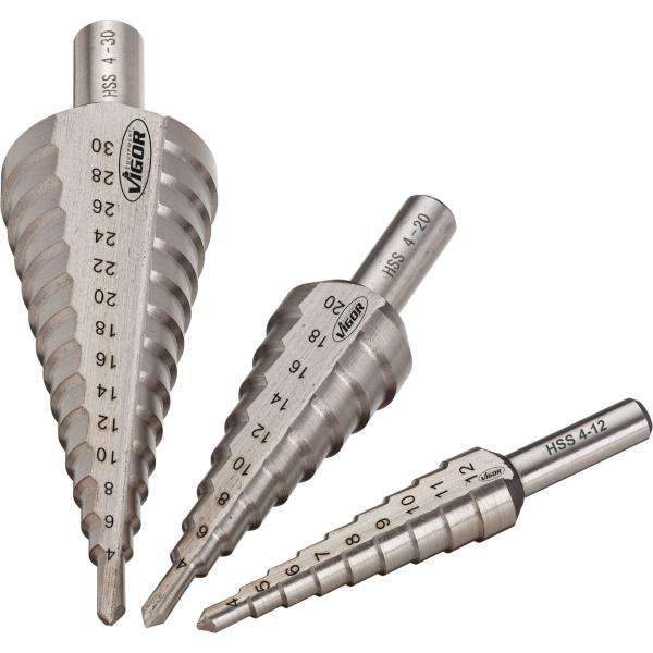 VIGOR - V1707 Jeu de forets étagés HSS (3 pièces) -EAN 4047728017077 FORETS FORET ÉTAPE PERCEUSE
