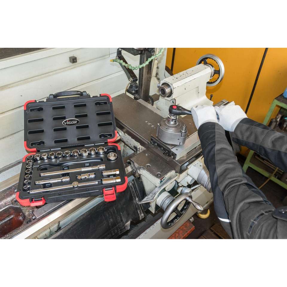 VIGOR Jeu de douilles ∙ V2460N ∙ 1/2 pouce (12.5mm) carré, creux ∙ Profil à 6 pans extérieurs ∙ 25 pièces ∙ 10 - 32 ∙ Nombre d'outils: