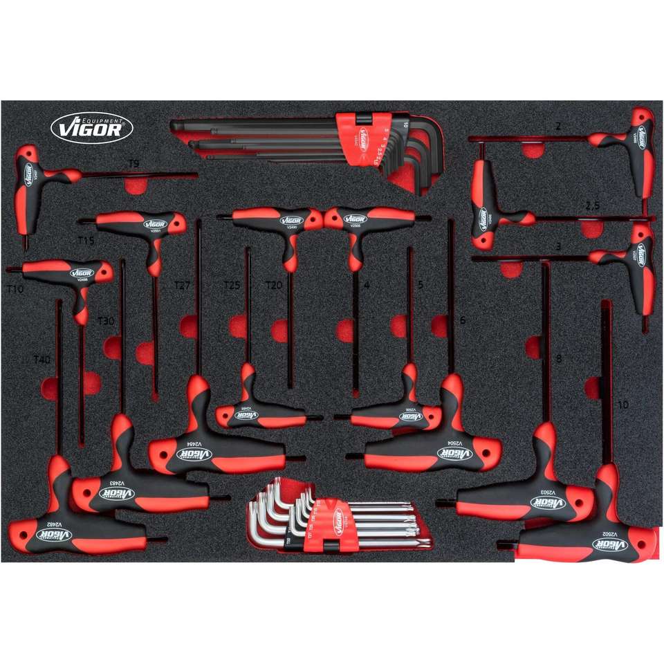 VIGOR Jeu de tournevis à poignée en T et tournevis décalés ∙ V5175 ∙ Torx intérieur®Profil, Profil à six pans intérieurs ∙ 34 pièces ∙ 2-1