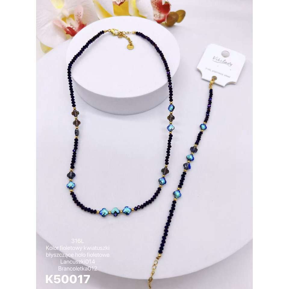 VIKILADY 316L Stainless Steel Necklace Bracelet Set 585 Gold Crystal Plated 24K Gold Polish Fashion Jewelry Gift Wholesale