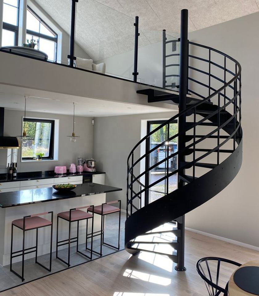 Code du bâtiment VIKO: Escalier en colimaçon moderne intérieur et extérieur à tube rond de style simple