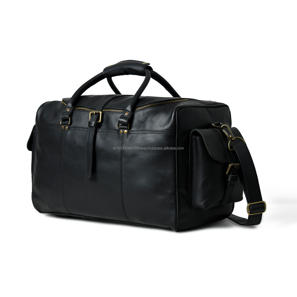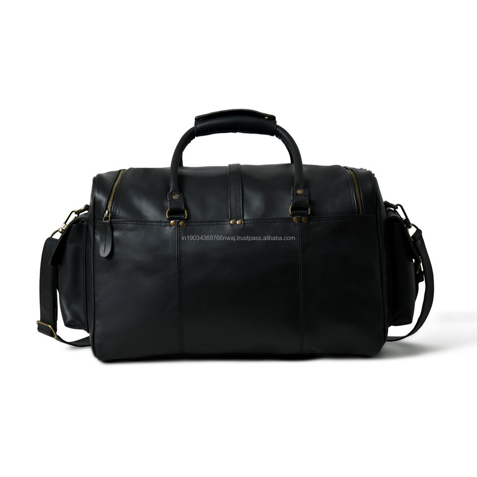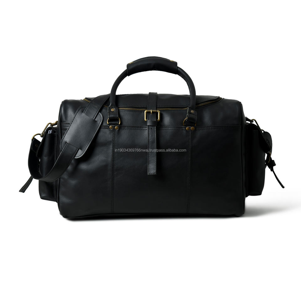 POCHETTE EN CUIR VINTAGE AVEC IMMENSE CAPACITÉ ET GRANDES POCHES LATÉRALES EN CUIR CIRÉ DE VACHE ET SANGLE D'ÉPAULE