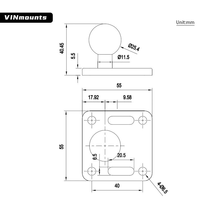 Nom du produit:Base à rotule de 1 pouce, 40*40mm