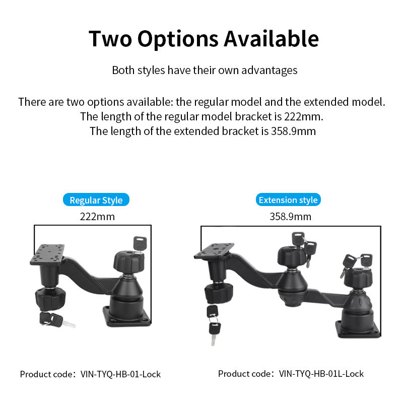 Nom du produit:Support de sondeur de pêche à bras horizontal avec bouton de verrouillage, version longue.