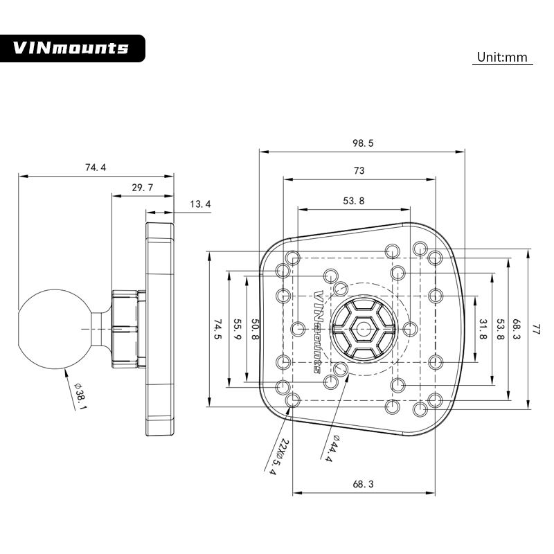 Adaptateur de boule pour sondeur de profondeur de bateau/détecteur de poissons VINmounts avec boule de 1,5 pouces pour Humminbird Piranha + plus VIN-C-009