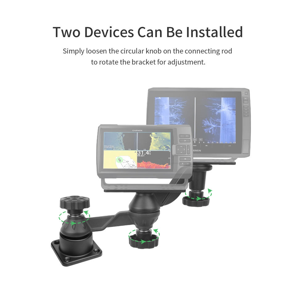 VINmounts horizontal arm side-mount fishfinder bracket – dual display bracket can hold two devices suitable for boats and kayaks