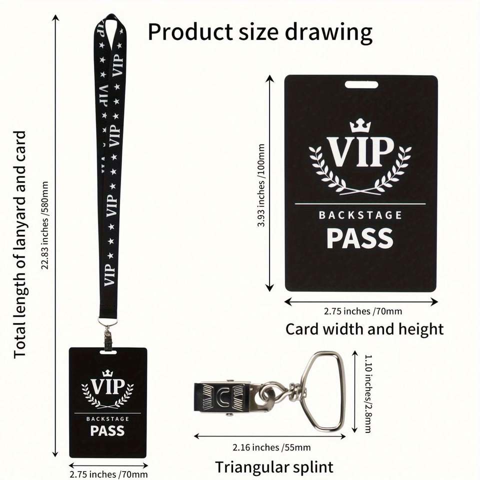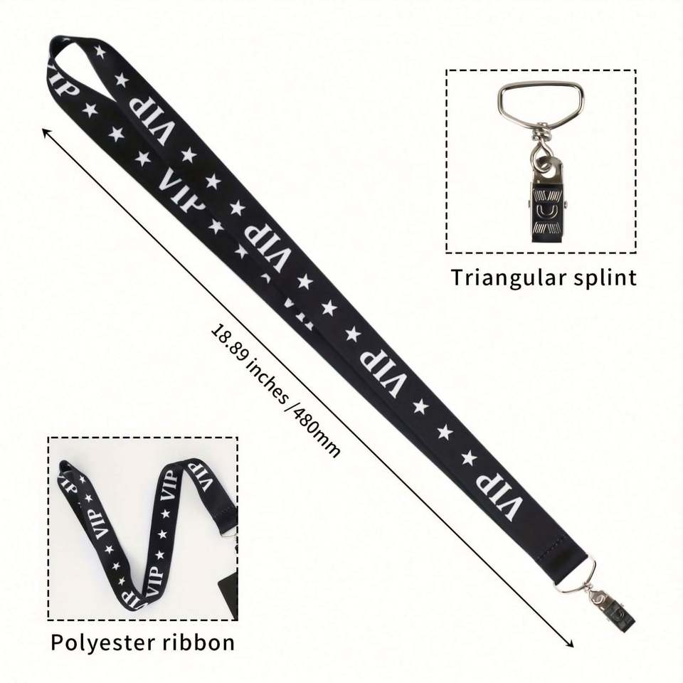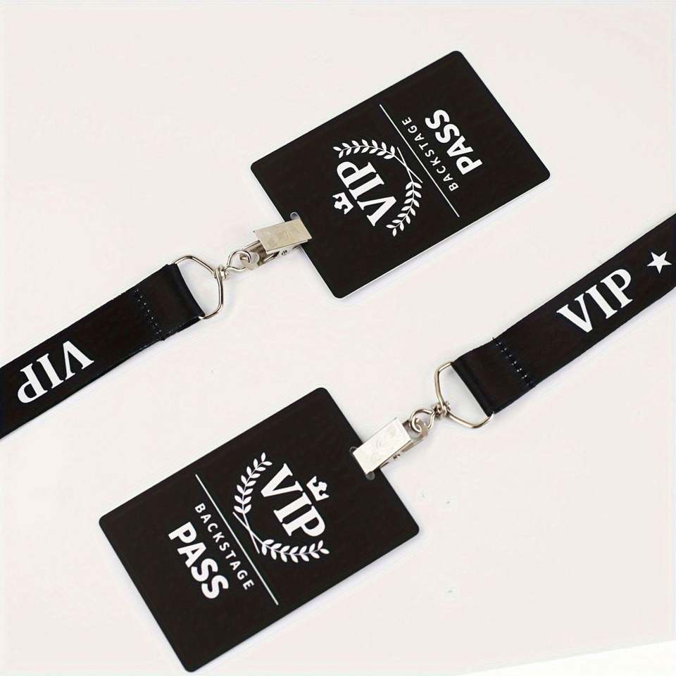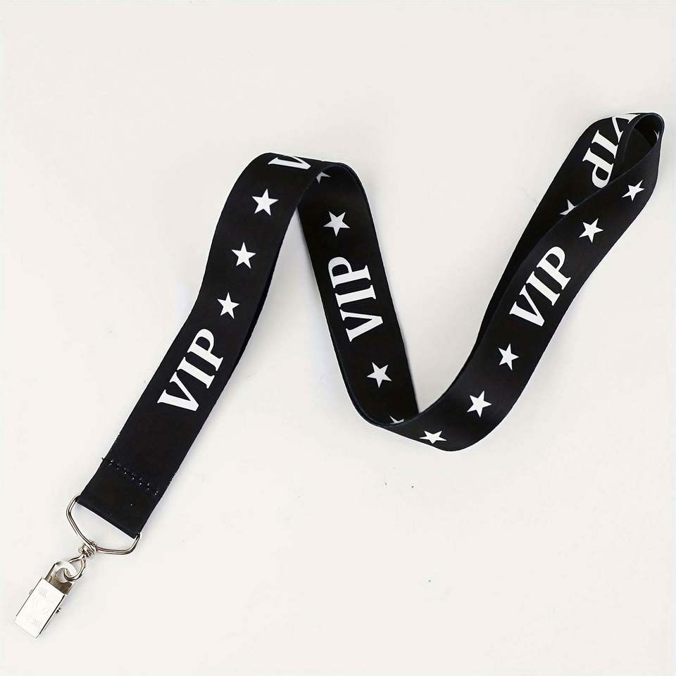 Cordon tour de cou VIP noir pour badges d'identification, porte-clés, téléphones portables, accessoires et cadeaux