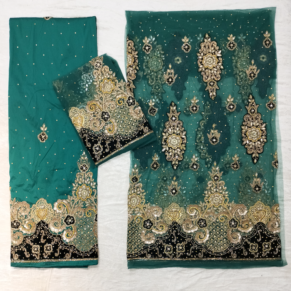 Caractéristique:Dentelle nette perlée lourde + tissu en soie